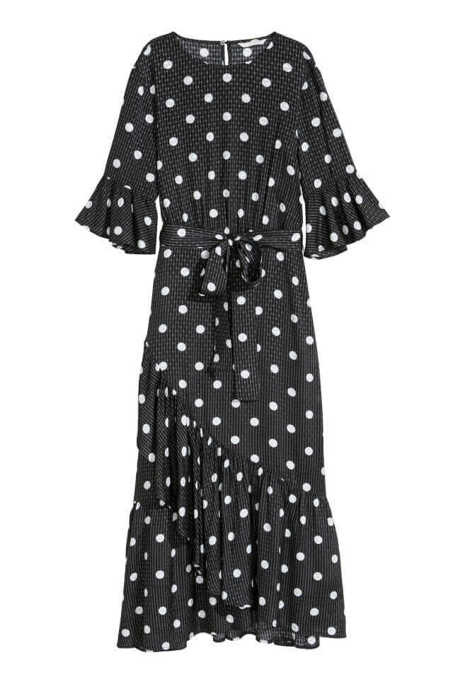 - Iar pentru iesirele din timpul liber, incearca o rochie midi cu buline, volane si o pereche de sandale cu talpa joasa!